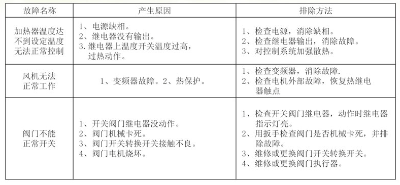 2、溫控表達不到設定位置:檢查電加熱管及線路,如有損壞,維修線路或更換電加熱管;調(diào)整脫附風機風量。